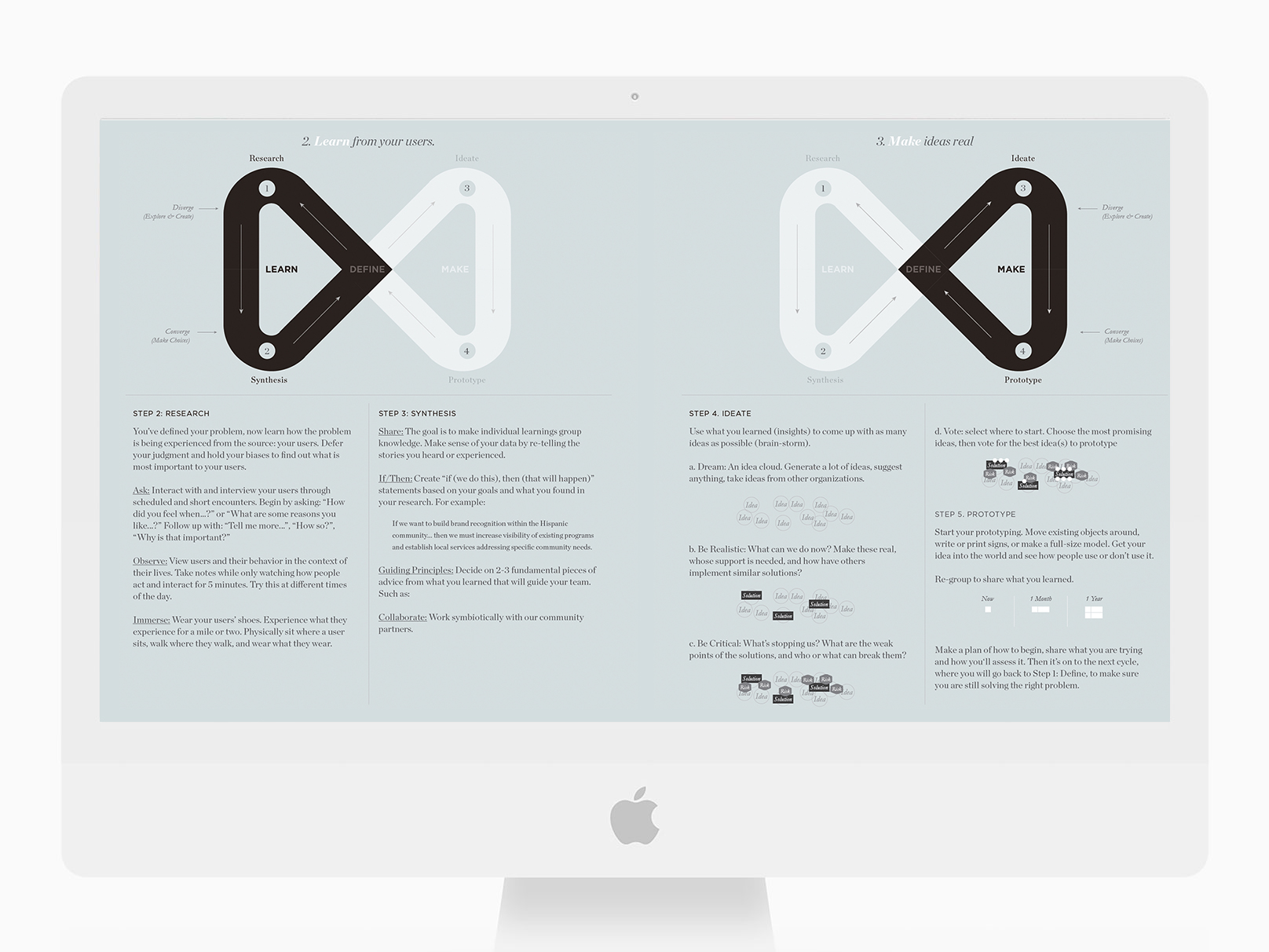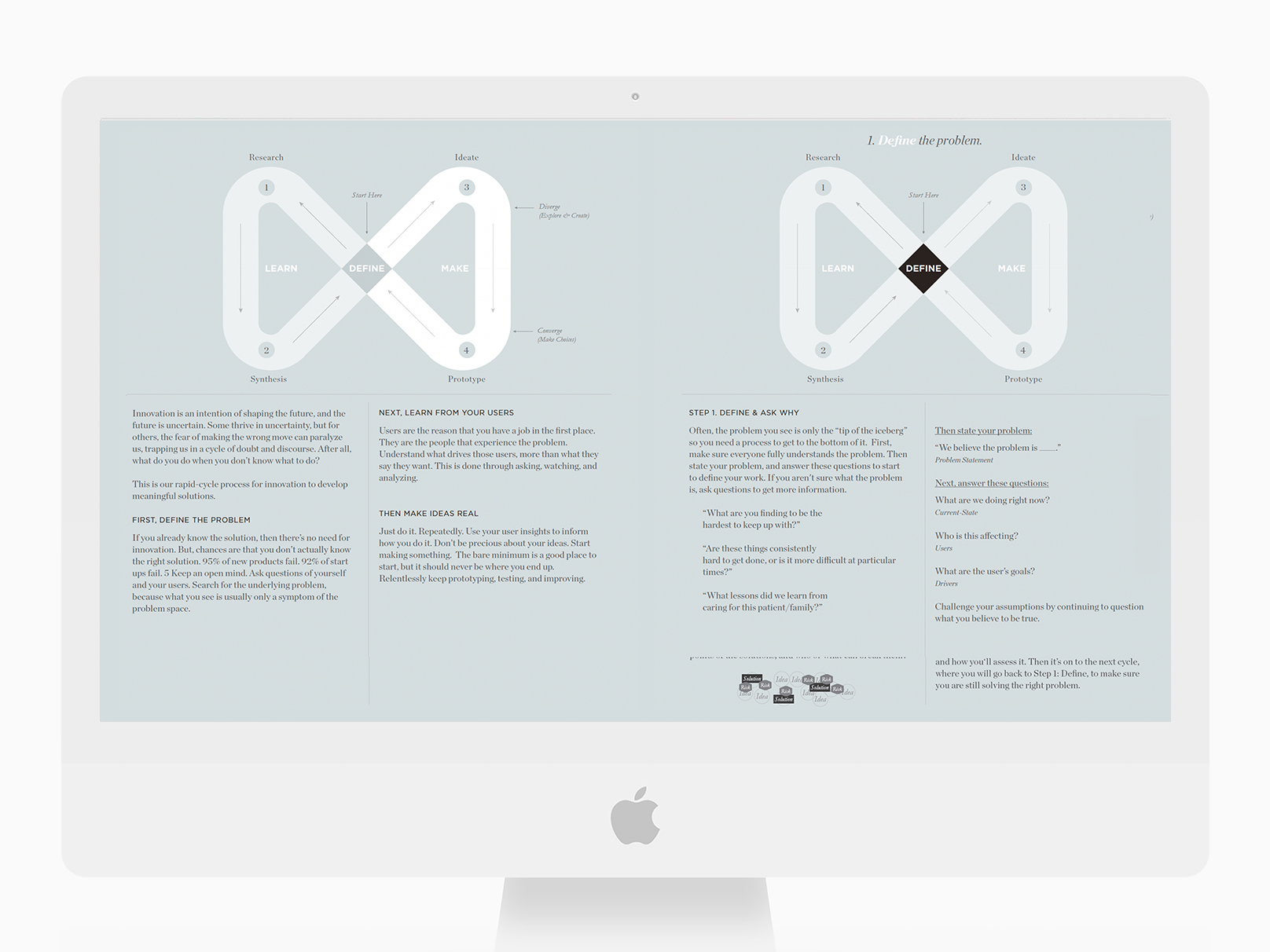 Designers learn what drives them, what actions they take, what relationships are most important, and which key moments build or lose trust. The Human-Centered Design (HCD) ethos is to listen, understand, create with, and design for the customer. A designer’s responsibility is to uncover needs and pain points because customers rarely have a seat at the table.