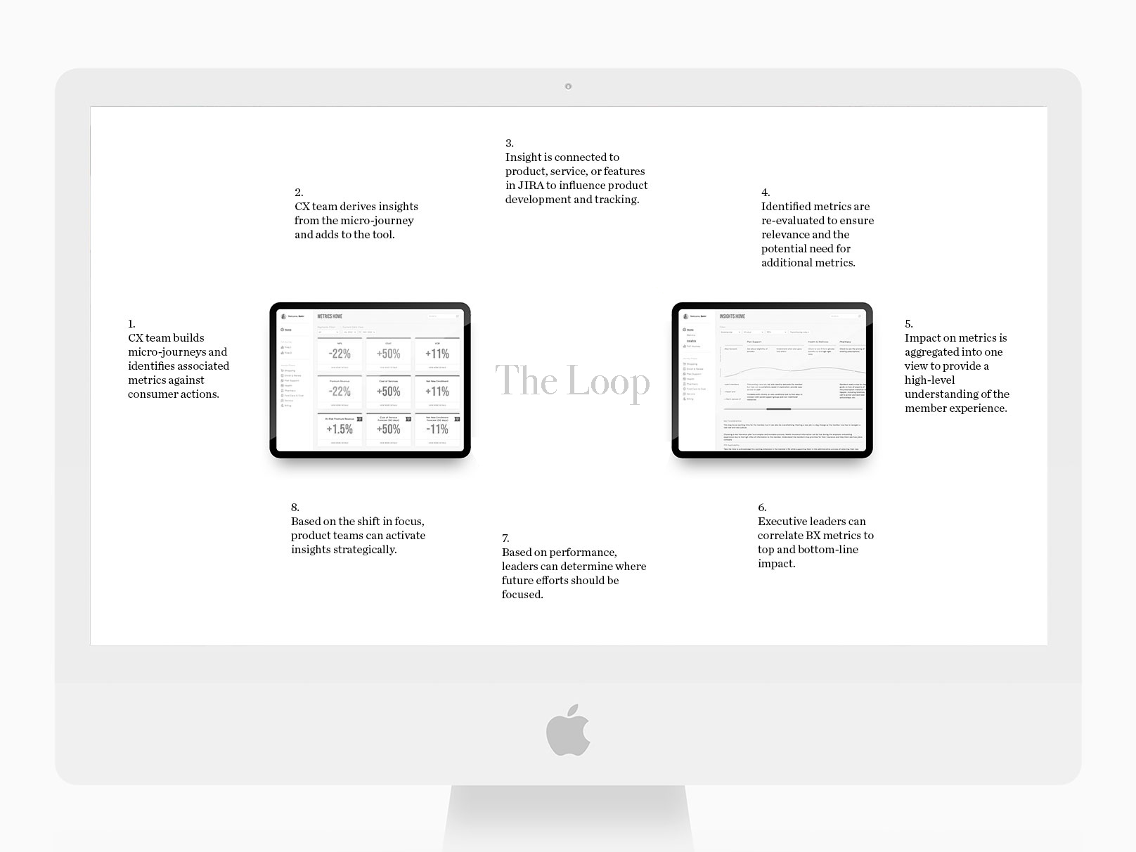 Imagine being able to track the performance of every initiative and understand how customer insights drive them. This is The Loop. A measurement framework that rationalizes the data companies need to know about customers, products, and services aligned to the journey to track direct experience-driven impact. The Loop is a rationalized measurement framework for tying experience to top and bottom-line performance.